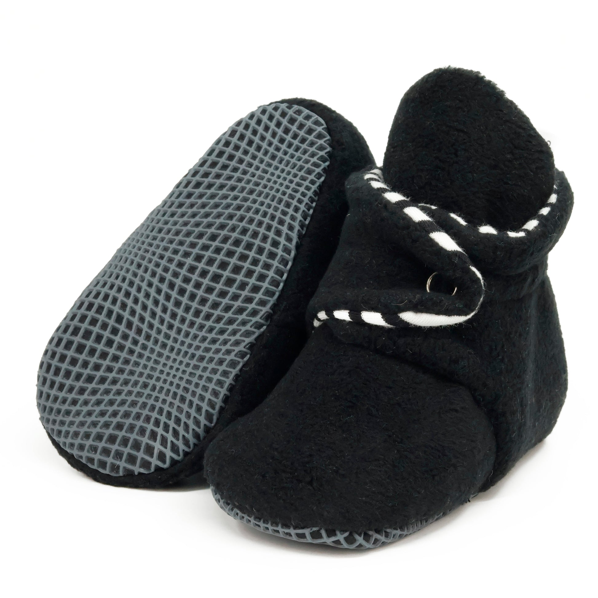 Anti-Slip Sole, Fleece Baby Booties, Newborn Home Booties, Sweat Proof Organic Cotton Lining, Black