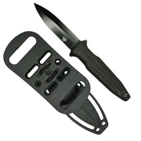 Constructed from 420 stainless steel, the Boot offers excellent corrosion resistance and ease of sharpening, ensuring that it maintains its edge even with regular use. This steel’s balanced properties deliver toughness and durability, perfect for a knife that may be subjected to demanding conditions. Furthermore, the blade is finished with a black PVD (Physical Vapor Deposition) coating, a cutting-edge technology that creates a hard, wear-resistant layer on the surface. PVD not only enhances the aesthetic appeal of the dagger with its sleek black finish but also protects it from scratches, corrosion, and environmental wear, ensuring longevity for all your tactical needs.
